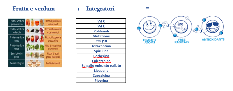 Prima di considerare come introdurre una integrazione di sostanze antiossidanti nel nostro organismo, ragionevolmente, dobbiamo impegnarci a ridurre le situazioni e i comportamenti pro- ossidanti ( alimentarsi in modalità sana,non bere alcoolici, mantenere un peso e una composizione corporea corretti, effettuare regolarmente attività fisica, non fumare, riposare adeguatamente….)